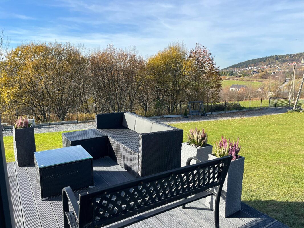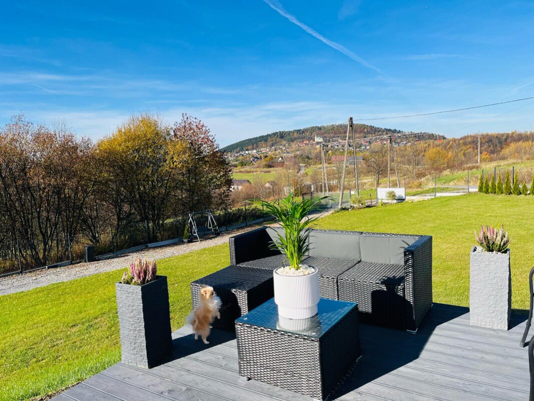 Klient otrzymał dom, który wyróżnia się w krajobrazie Lanckorony, dzięki luksusowej elewacji z modrzewia Duo Romb.